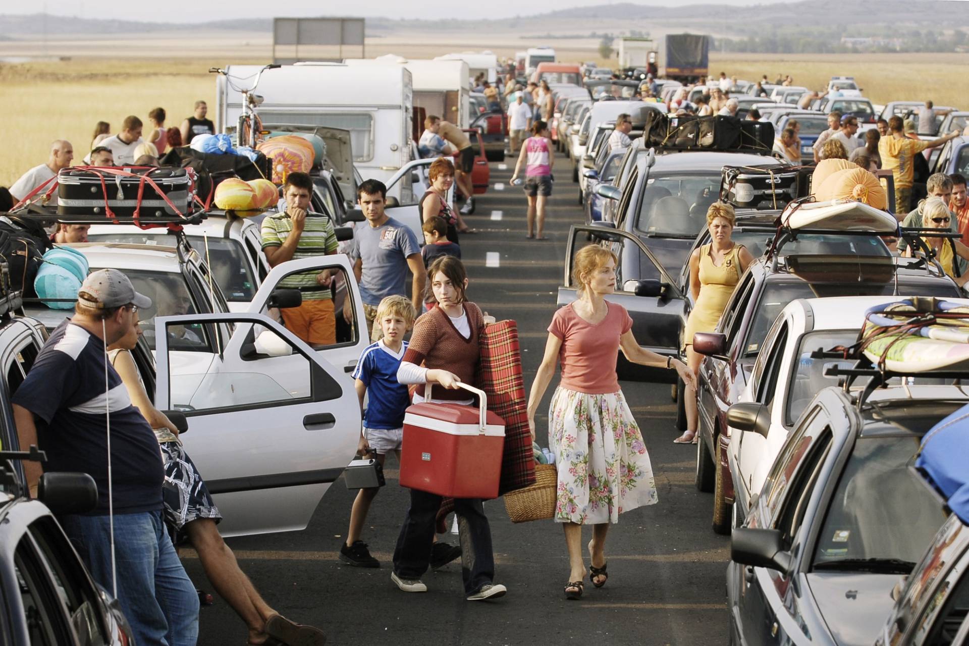 Inmitten einer ruhigen und kargen Landschaft erstreckt sich so weit das Auge reicht eine leere Autobahn, die seit dem Bau vor mehreren Jahren unbenutzt geblieben ist und langsam verfällt. Am Rande des von Pflanzen durchdrungenen Asphalts, nur wenige Meter von der Einzäunung entfernt, befindet sich ein einsames Haus mit einem kleinen Garten. In diesem Haus wohnt eine Familie. Der Sommer beginnt, und die Arbeiten werden wiederaufgenommen. Die Autobahn soll in Betrieb genommen werden …